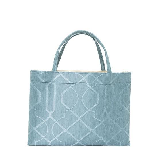 上品な水色が魅力的な一品です。程良い大きさで使いやすく、ファスナー付きで中身もしっかり収納できます。