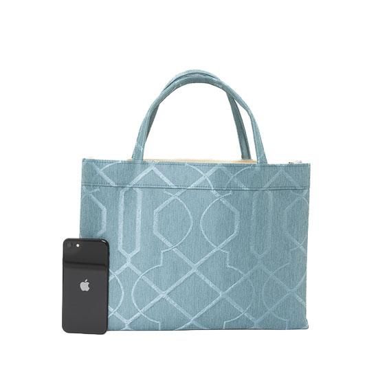 [外寸サイズ]高さ:約25.0cm(持ち手含む37.5cm)・巾:約34.0cm・マチ:約8.0cm(測り方によってサイズが若干異なる場合がございます。※サイズ対比:iPhone SE )