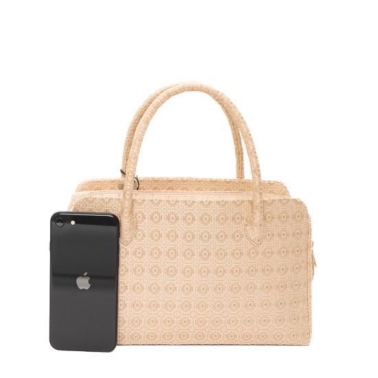 [外寸サイズ]高さ:約15.5cm(持ち手含む26.3cm)・巾:約25.0cm・マチ:約9.5cm(測り方によってサイズが若干異なる場合がございます。※サイズ対比:iPhone SE )