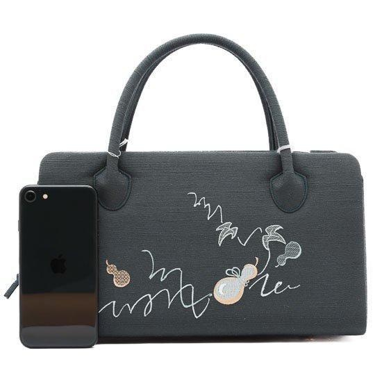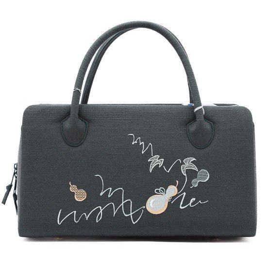 上質な絹100%の表地を使用しており、洗練されたひょうたん柄のデザインが特徴です。シルクガード加工が施されているため、高級感のある光沢としなやかな手触りを楽しむことができます。また、底鋲が付いているので、バッグの底部をしっかりと保護し、長くご愛用いただけます。