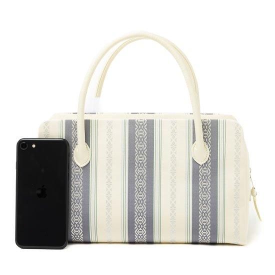 上質な博多織献上柄が施された白地にグレーの柄が映え、洗練された印象を与えます。