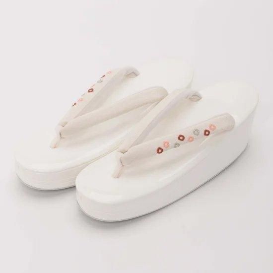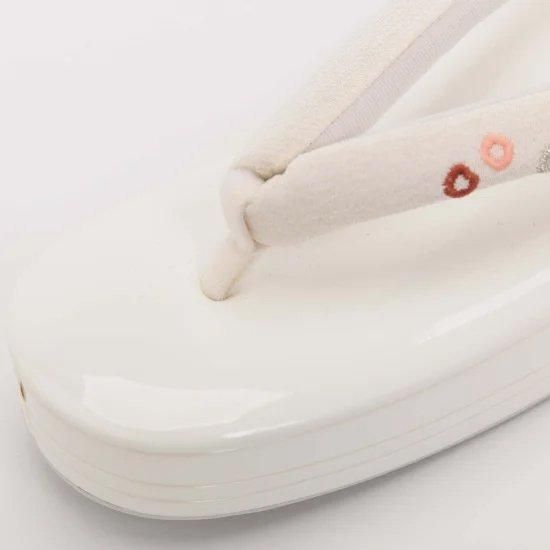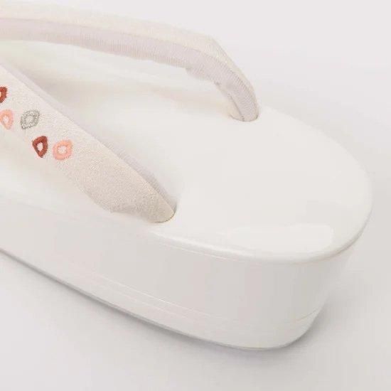 台の色は上面と側面とも清潔感のある白色で、鼻緒の柄も白にシンプルな丸模様。足元を美しく引き立てる草履です。この組み合わせは、和装をよりエレガントに演出してくれます。白い草履は清楚な印象を与え、その着物にも合うカラーリングで様々なシーンで活躍間違いなしです。